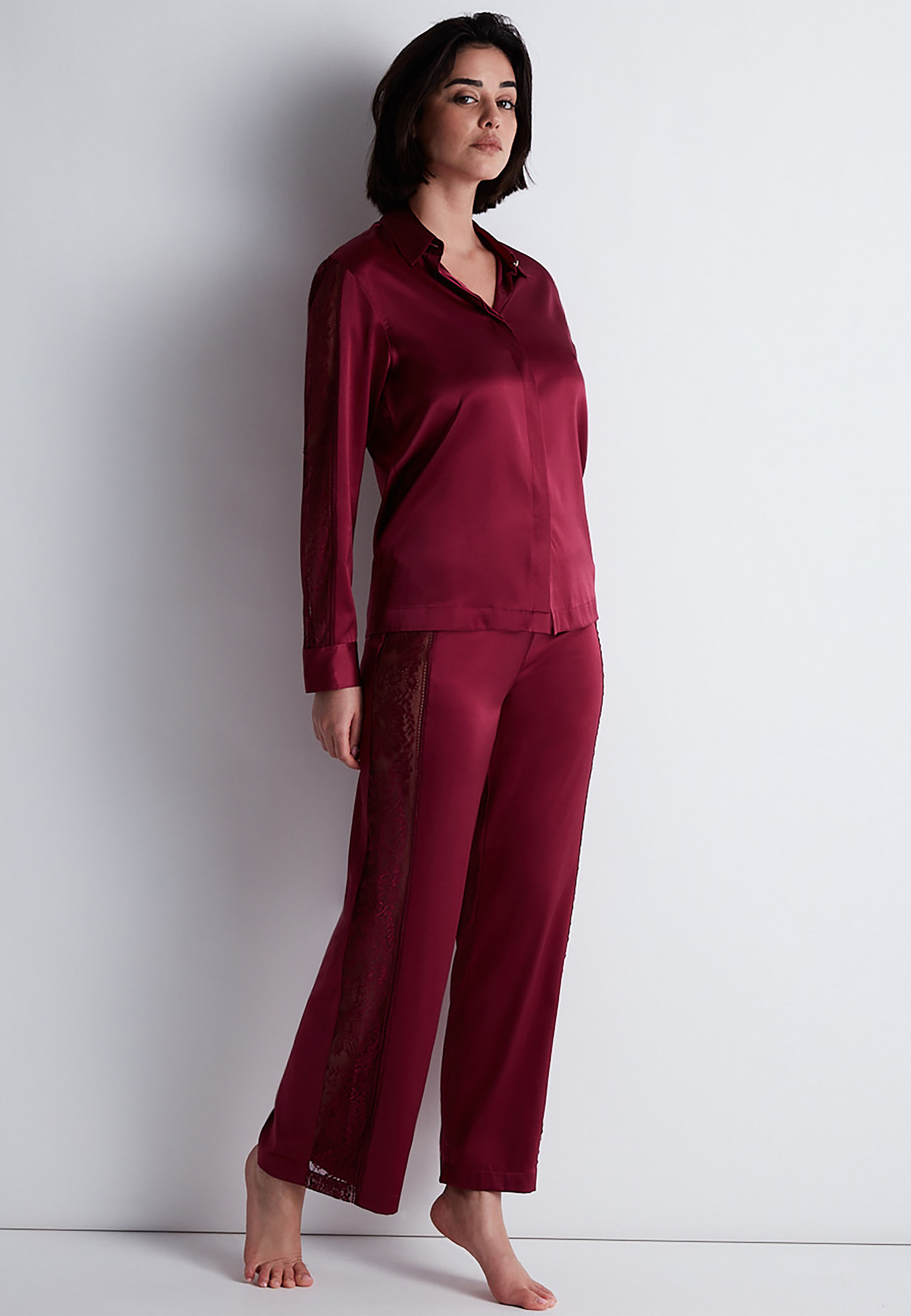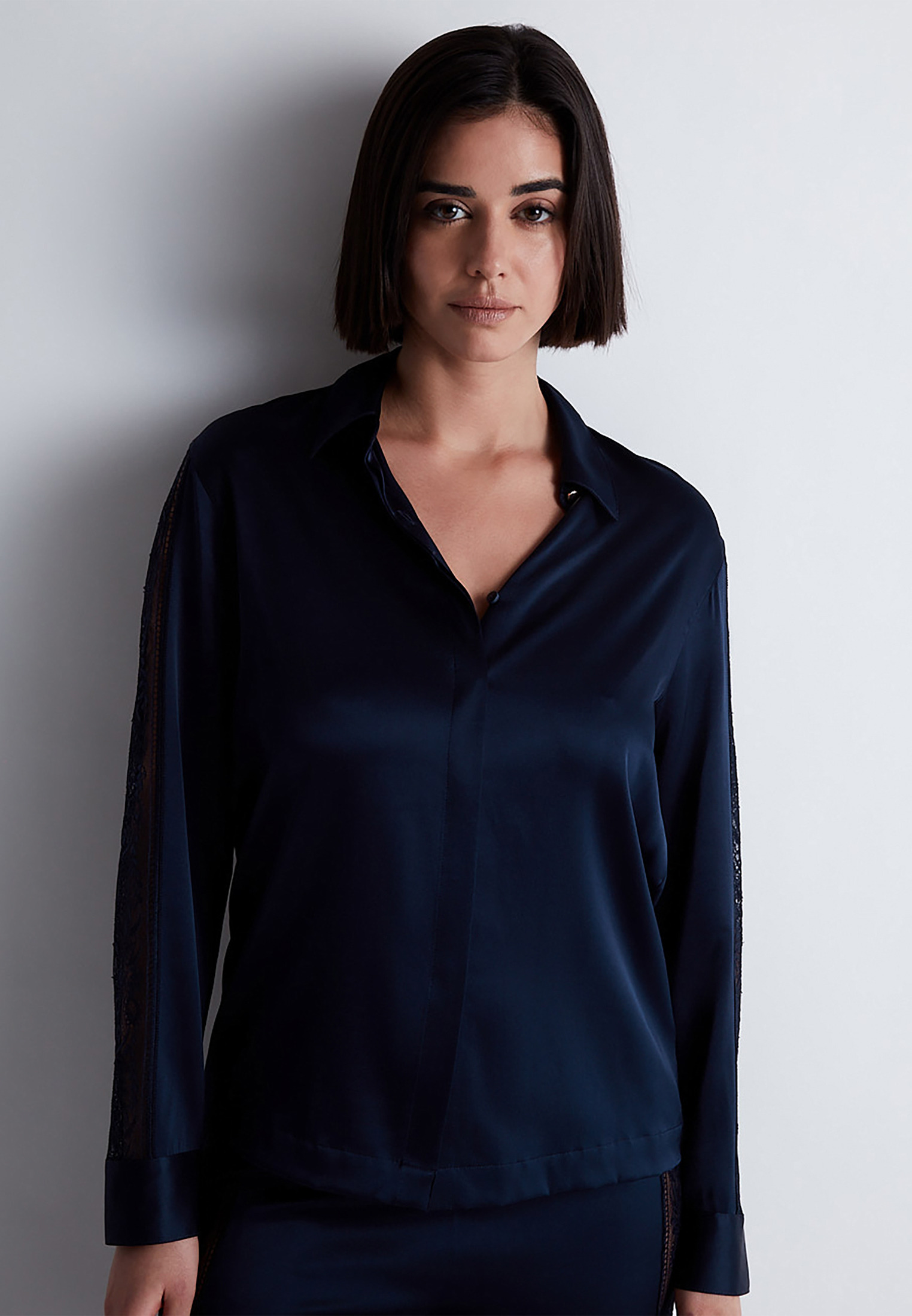 Chemise à manches longues qui se boutonne par l’avant. Cette pièce se porte, au gré de son envie, en pièce de nuit ou en prêt-à-porter.
