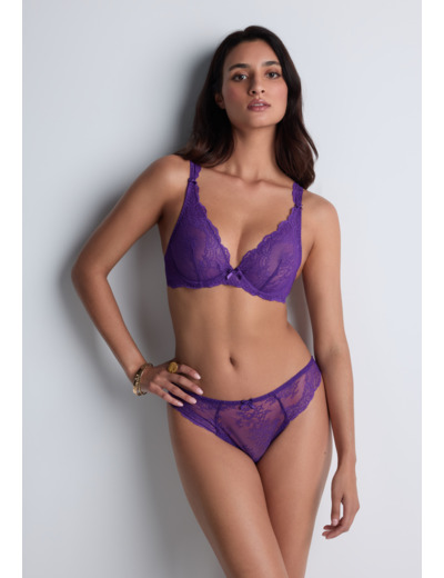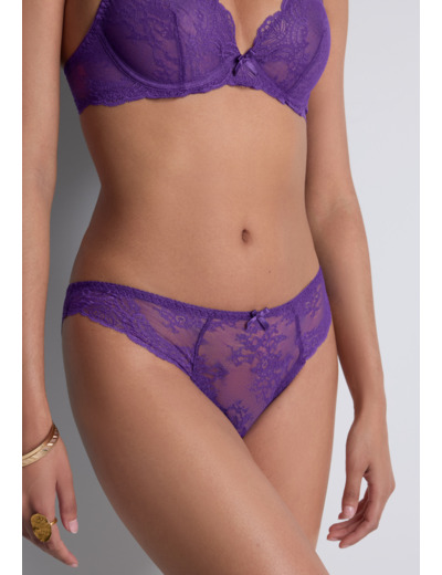 Modèle culotte, taille aux hanches, couvrante, au feston décoratif sur les fesses. Bénéfice : une culotte enrichie au dos.