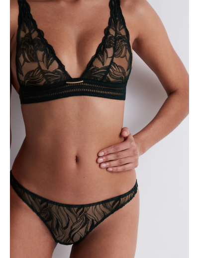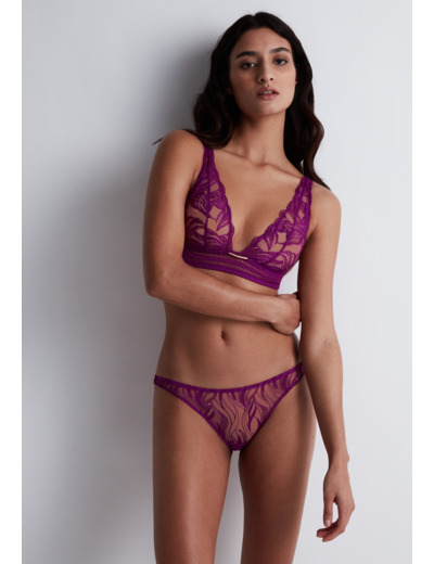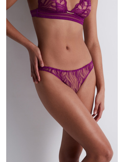 Modèle culotte, taille aux hanches, couvrante, au feston décoratif sur les fesses. Bénéfice : une culotte enrichie au dos.