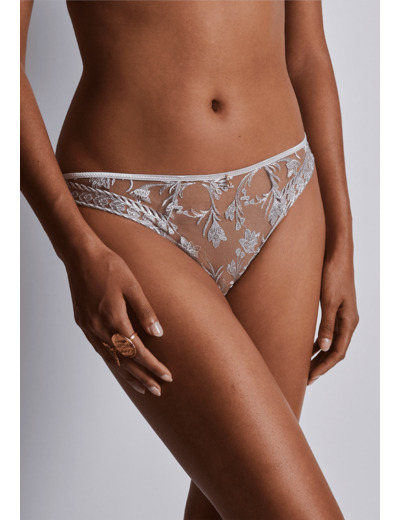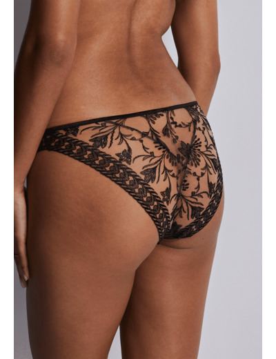Modèle culotte, taille aux hanches, couvrante, au feston décoratif sur les fesses. Bénéfice : une culotte enrichie au dos.
