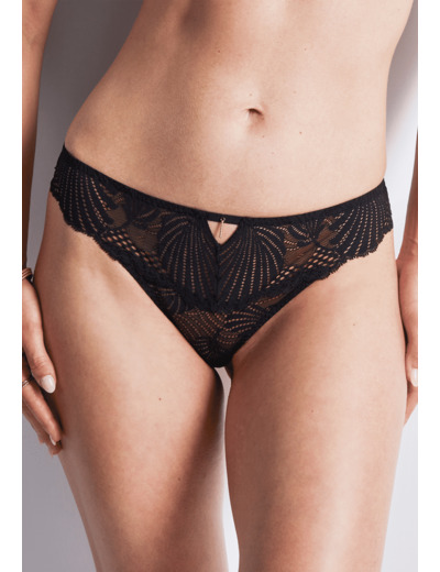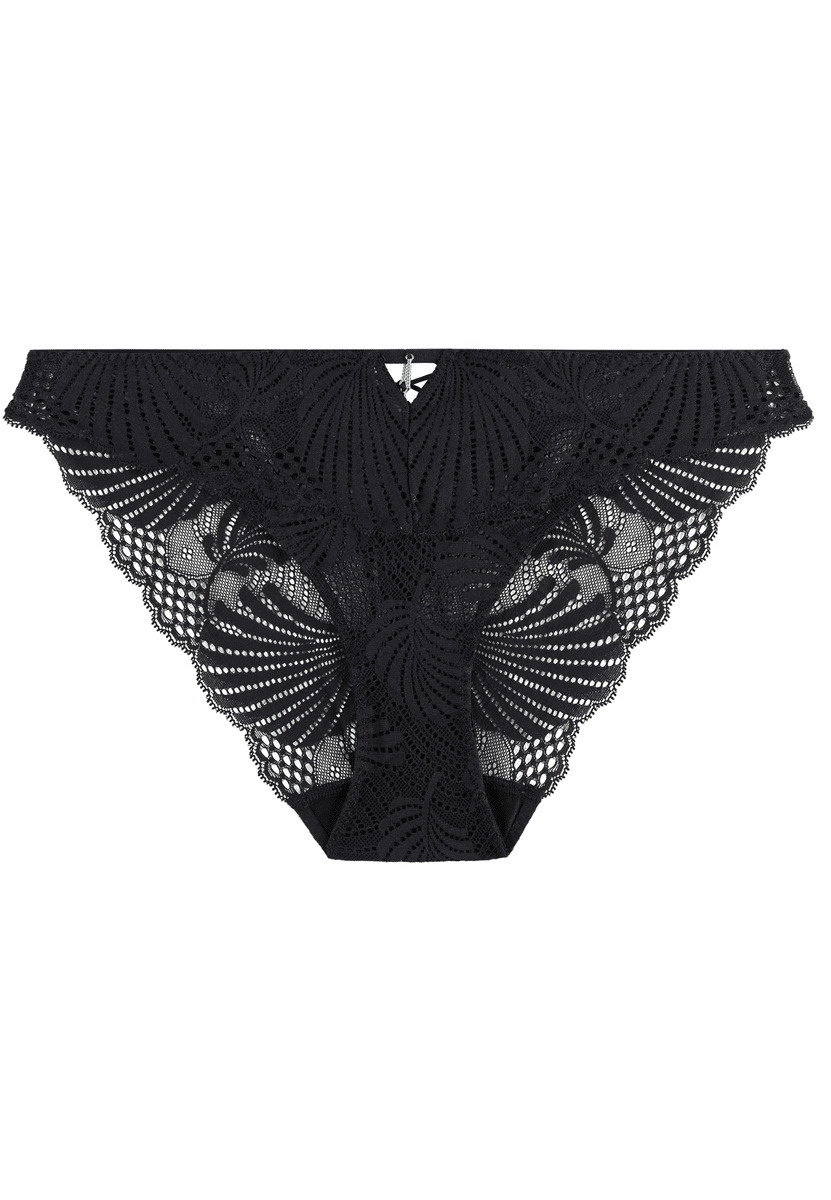 Modèle culotte, taille aux hanches, couvrante, au feston décoratif sur les fesses. Bénéfice : une culotte enrichie au dos.