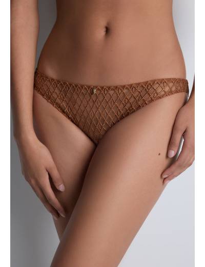 Modèle culotte, taille aux hanches, couvrante, au feston décoratif sur les fesses. Bénéfice : une culotte enrichie au dos.