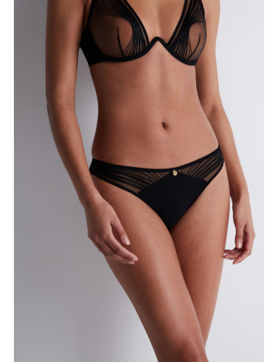 Modèle culotte, taille aux hanches, couvrante, au feston décoratif sur les fesses. Bénéfice : une culotte enrichie au dos.