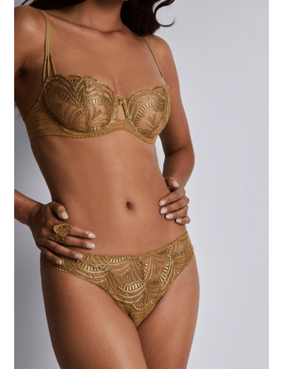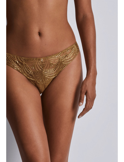 Modèle culotte, taille aux hanches, couvrante, au feston décoratif sur les fesses. Bénéfice : une culotte enrichie au dos.