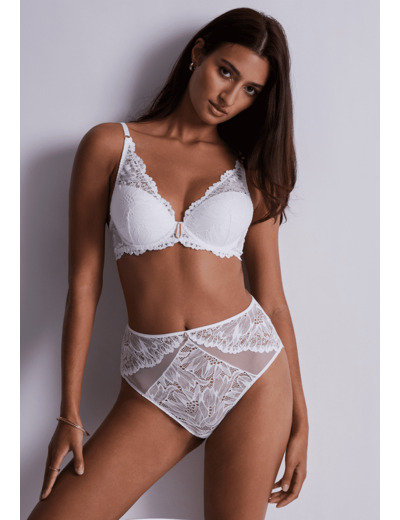 Sublime dans son style rétro-chic, la culotte haute est à la fois sexy et confortable. Sa forme galbante revêt les courbes d’une parure romantique pour un rêve de séduction qui flotte du bas des hanches jusqu’au nombril.