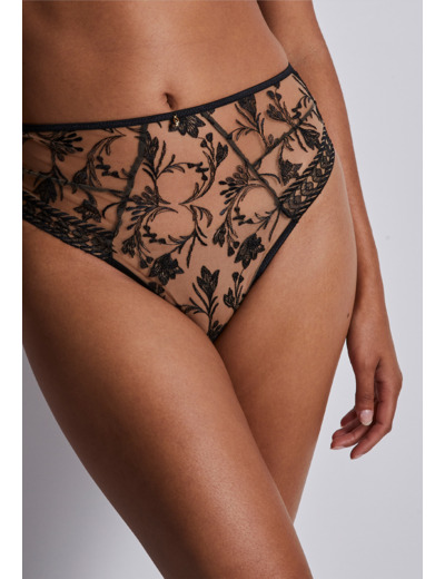 Sublime dans son style rétro-chic, la culotte haute est à la fois sexy et confortable. Sa forme galbante revêt les courbes d’une parure romantique pour un rêve de séduction qui flotte du bas des hanches jusqu’au nombril.