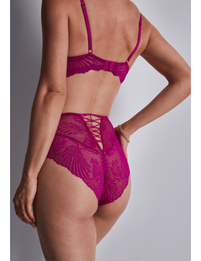 Sublime dans son style rétro-chic, la culotte haute est à la fois sexy et confortable. Sa forme galbante revêt les courbes d’une parure romantique pour un rêve de séduction qui flotte du bas des hanches jusqu’au nombril.