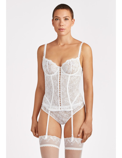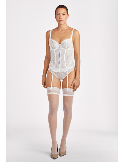 Sexy et élégante, la guêpière conjugue tous les atouts d’un bustier et d’un porte-jarretelles. Son décolleté assurant un maintien et un confort parfaits se poursuit le long de la taille pour une féminité affirmée.