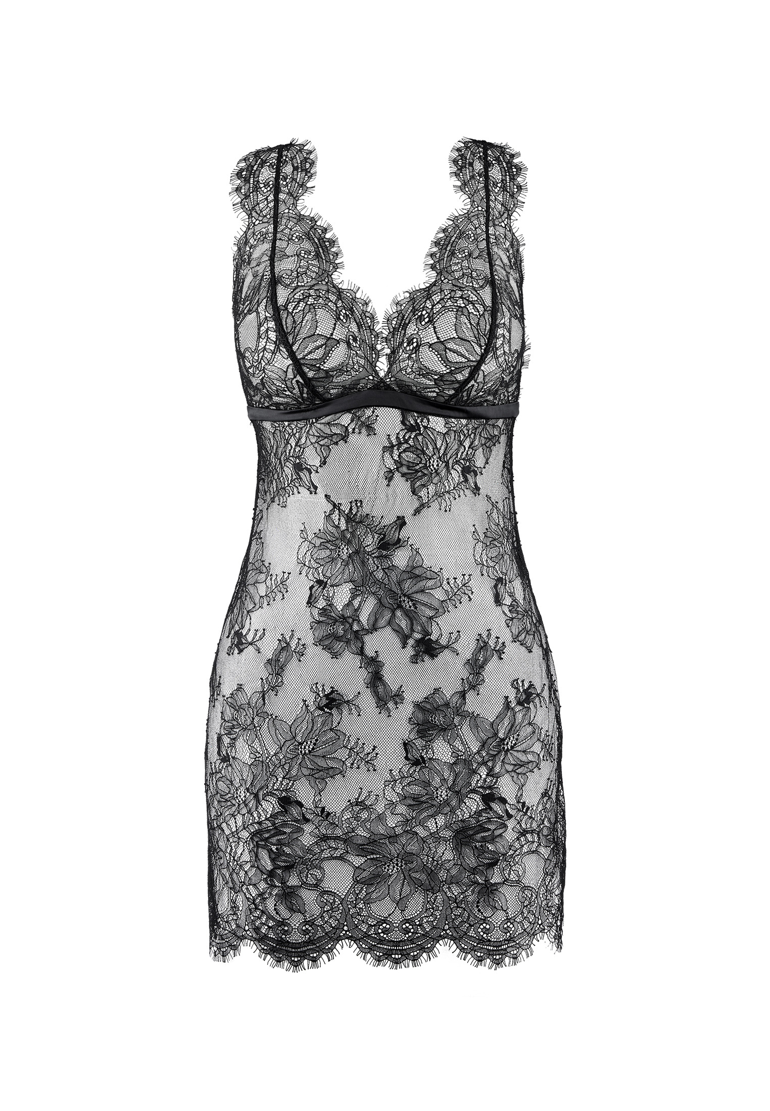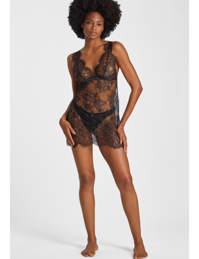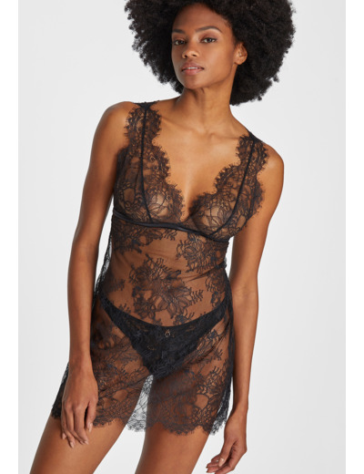 Plus ou moins transparente selon les collections, hauteur au-dessus du genou. Les bretelles sont réglables pour un meilleur maintien.