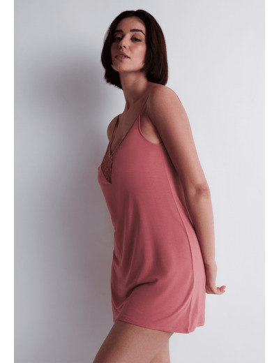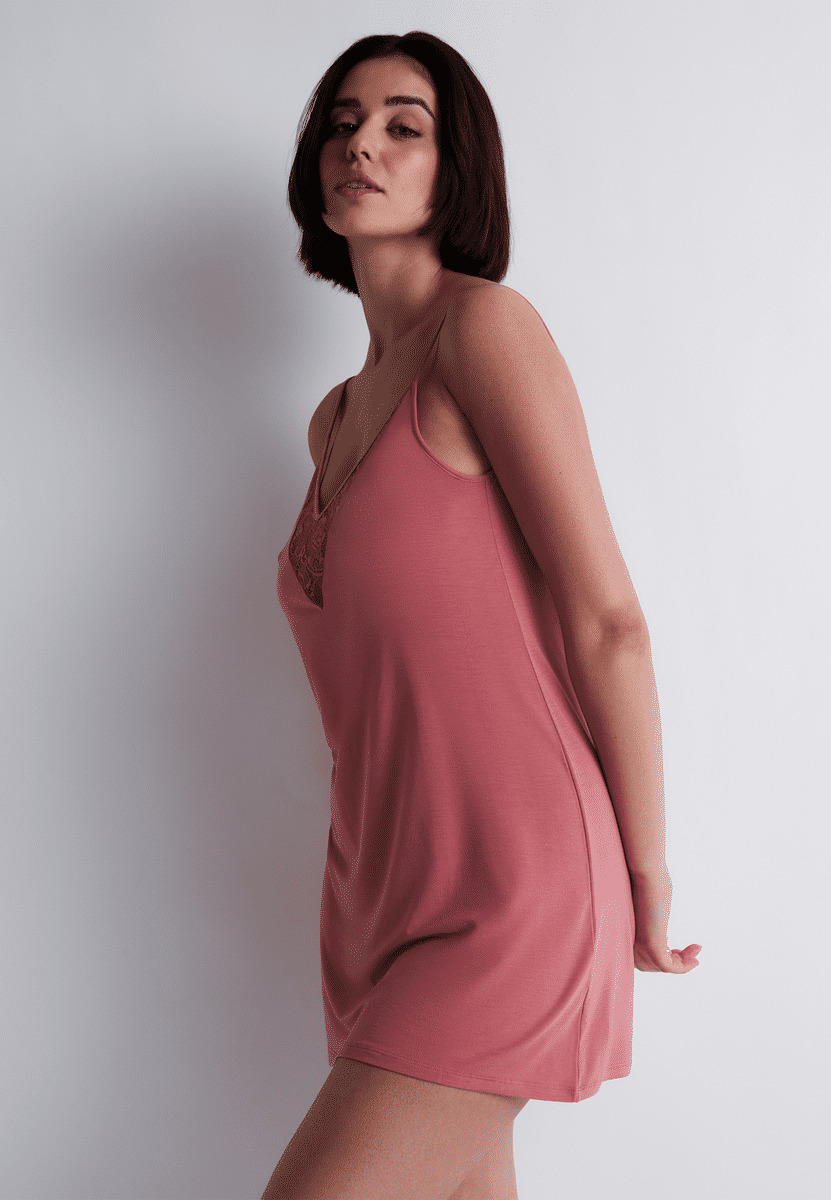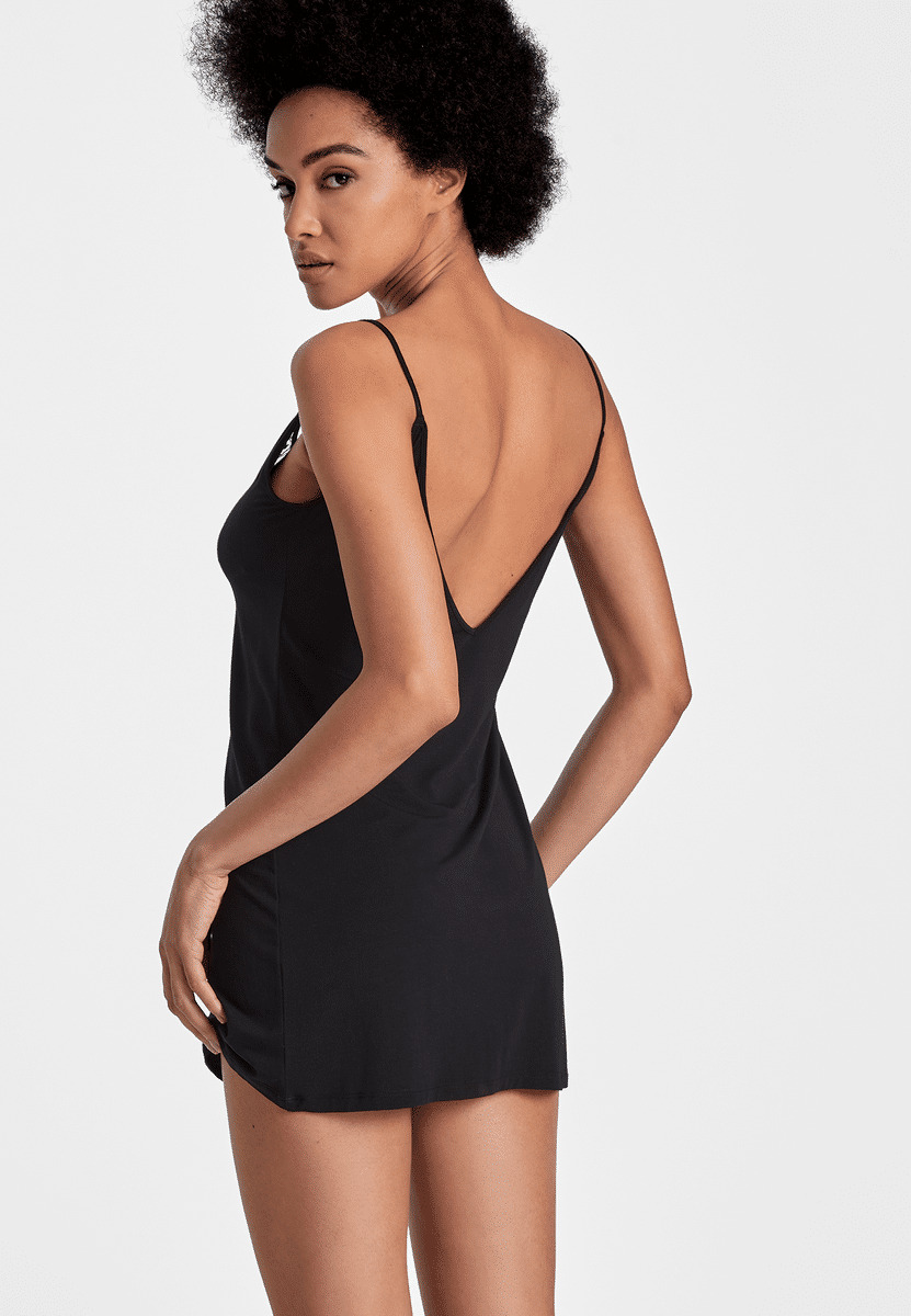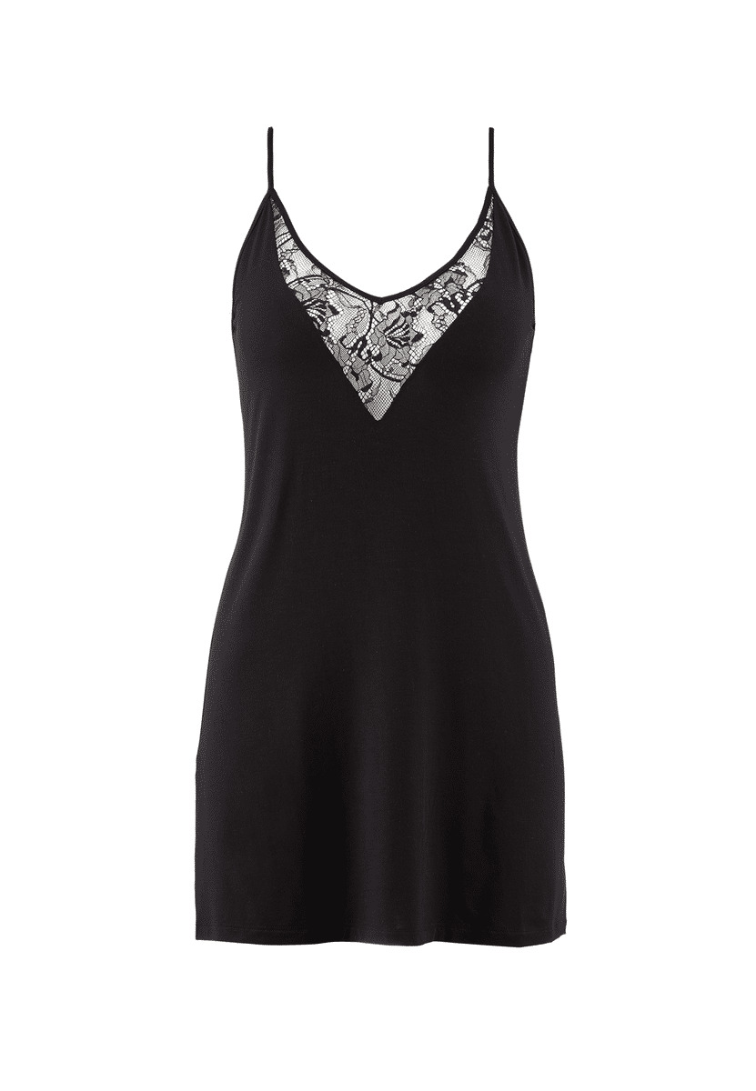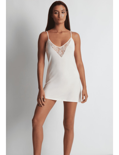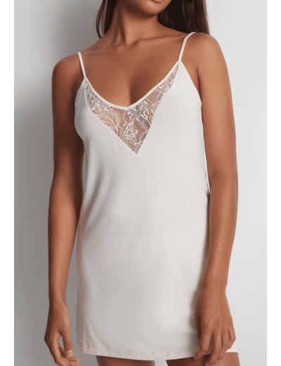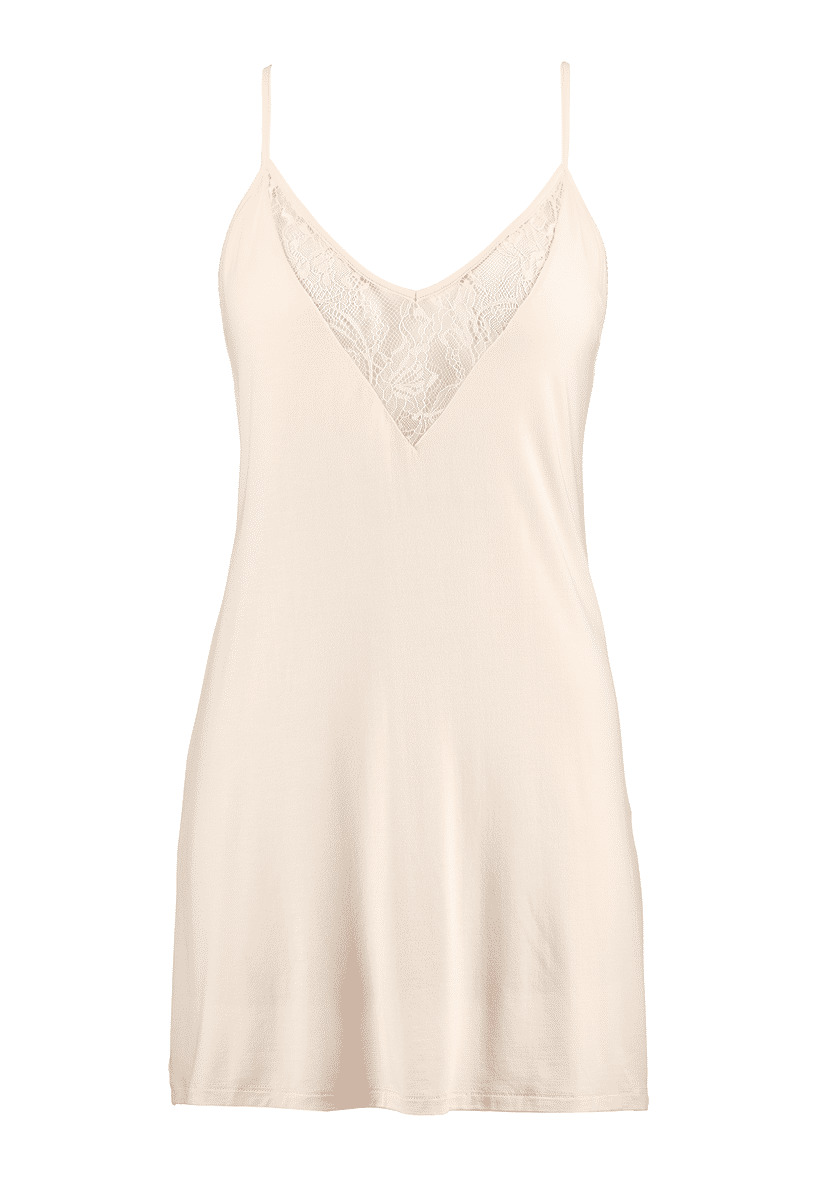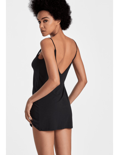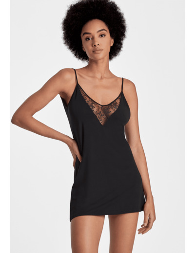 Plus ou moins transparente selon les collections, hauteur au-dessus du genou. Les bretelles sont réglables pour un meilleur maintien.