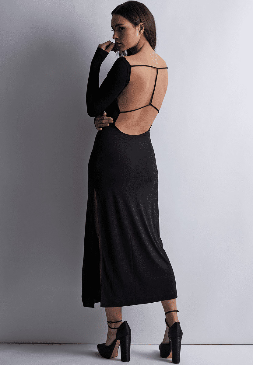 Cette robe descend jusqu’aux chevilles pour un porté très chic et sexy.