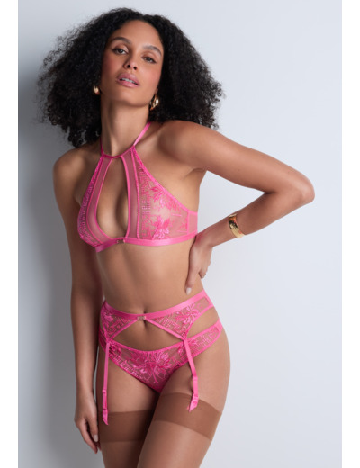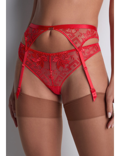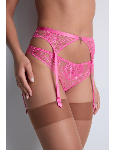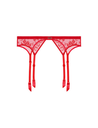 Pièce de lingerie comme une petite ceinture se portant au niveau des petites hanches et agrémentée de quatre jarretelles fixes pour soutenir les bas