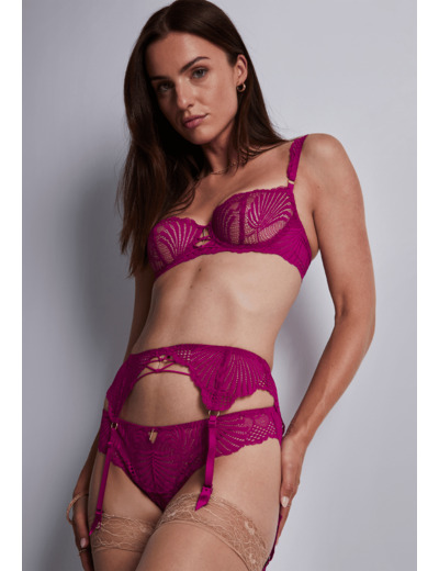 Pièce de lingerie comme une petite ceinture se portant au niveau des petites hanches et agrémentée de quatre jarretelles fixes pour soutenir les bas