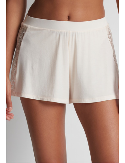Forme boxer, taille basse, large sur les côtés, couvrant et emboîtant les fesses. Sur le nightwear, il est décliné en version short. Bénéfice : une forme moderne, emboîtante et confortable.