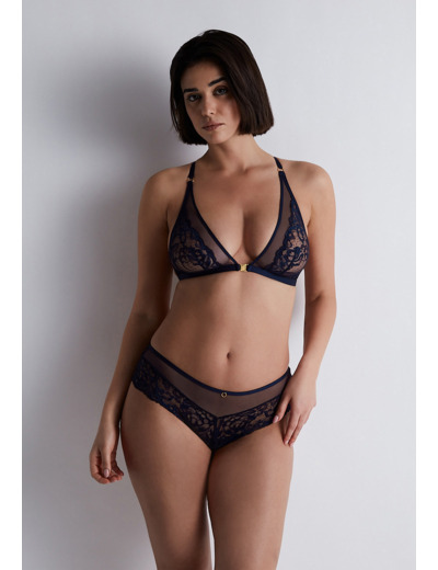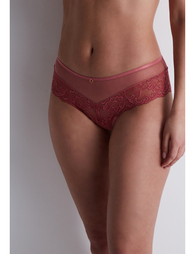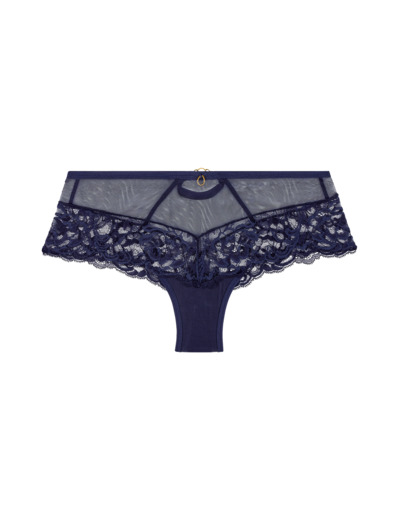 Le shorty dessine sur les hanches sa forme shorty avec sa coupe taille basse et large sur les côtés. Confortable et moderne, la pièce est sublimée par des dentelles raffinées.