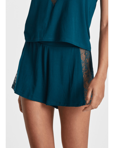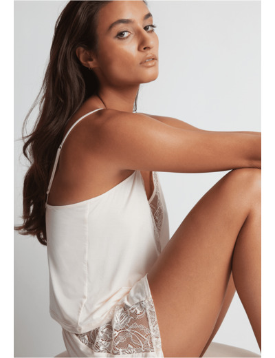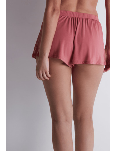 Forme boxer, taille basse, large sur les côtés, couvrant et emboîtant les fesses. Sur le nightwear, il est décliné en version short. Bénéfice : une forme moderne, emboîtante et confortable.