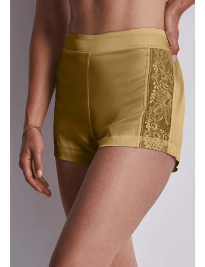 Forme boxer, taille basse, large sur les côtés, couvrant et emboîtant les fesses. Sur le nightwear, il est décliné en version short. Bénéfice : une forme moderne, emboîtante et confortable.