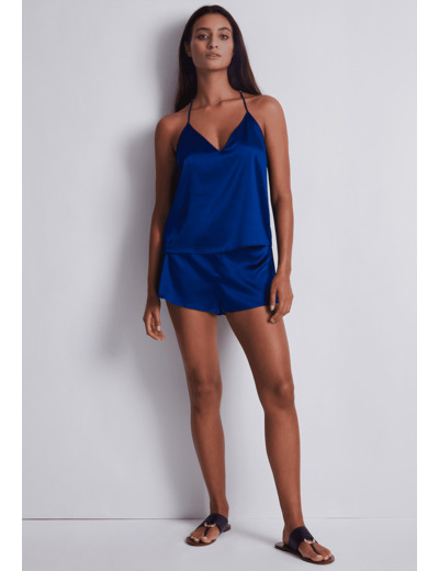 Forme boxer, taille basse, large sur les côtés, couvrant et emboîtant les fesses. Sur le nightwear, il est décliné en version short. Bénéfice : une forme moderne, emboîtante et confortable.