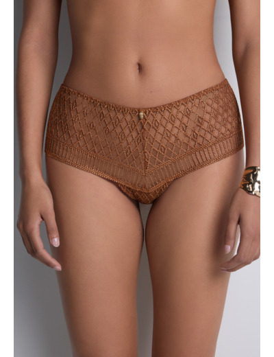 Le shorty dessine sur les hanches sa forme shorty avec sa coupe taille basse et large sur les côtés. Confortable et moderne, la pièce est sublimée par des dentelles raffinées.