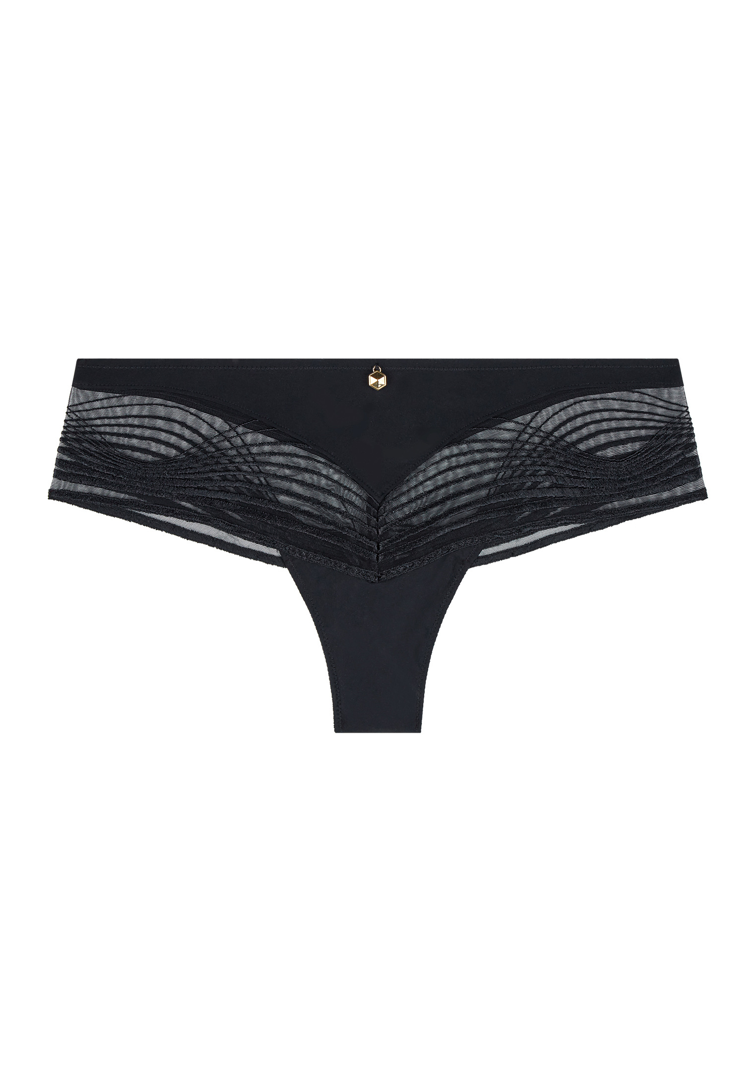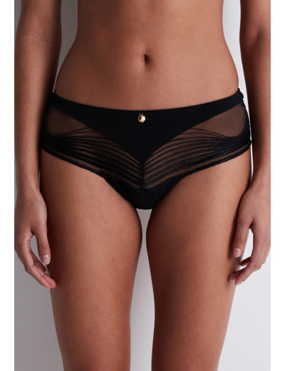 Le shorty dessine sur les hanches sa forme shorty avec sa coupe taille basse et large sur les côtés. Confortable et moderne, la pièce est sublimée par des dentelles raffinées.