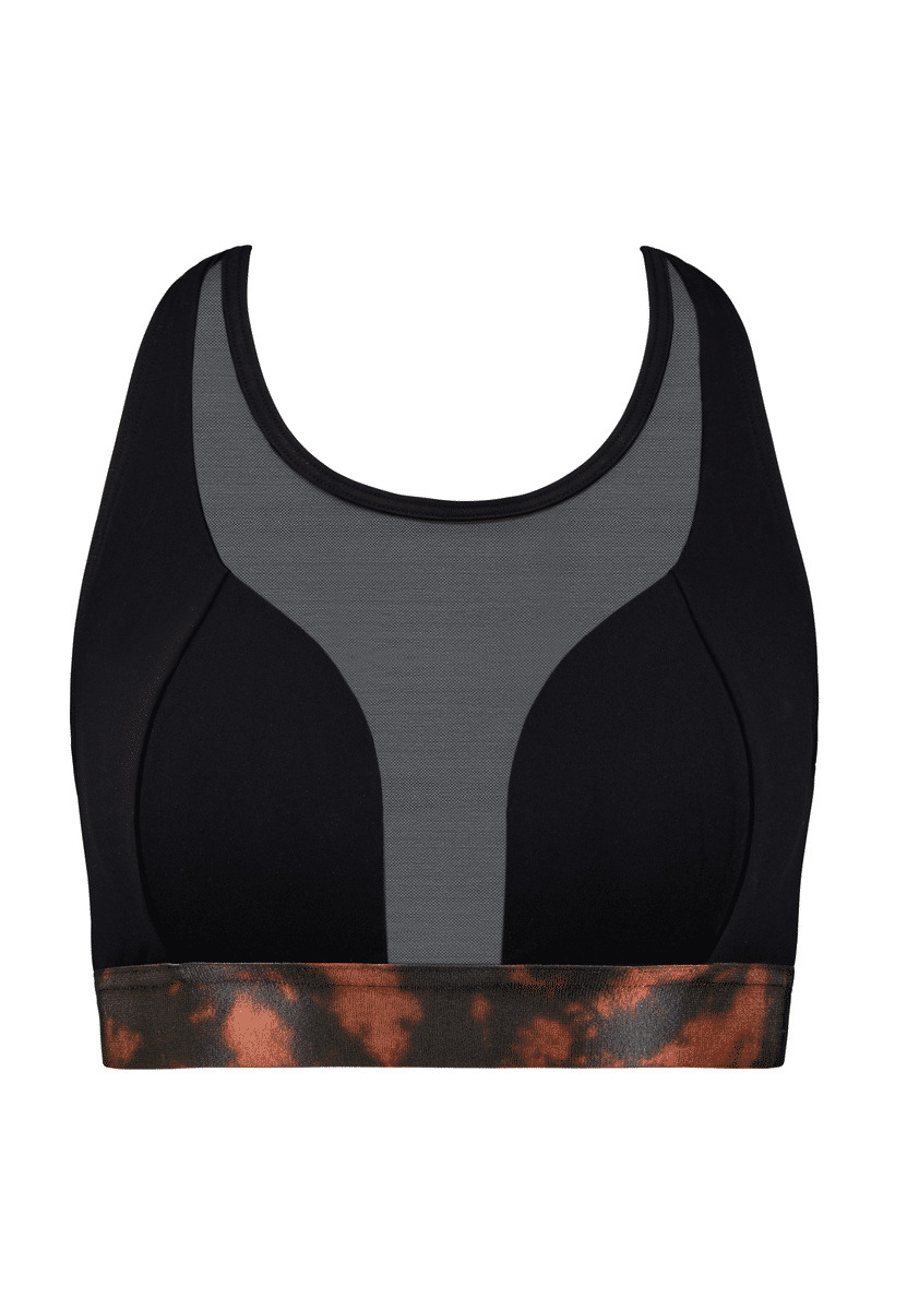 La brassière offre une coupe originale avec des bretelles larges portées basses sur les épaules pour un décolleté élégant et ouvert et un dos sexy, dans un jeu de bandes résolument mode.