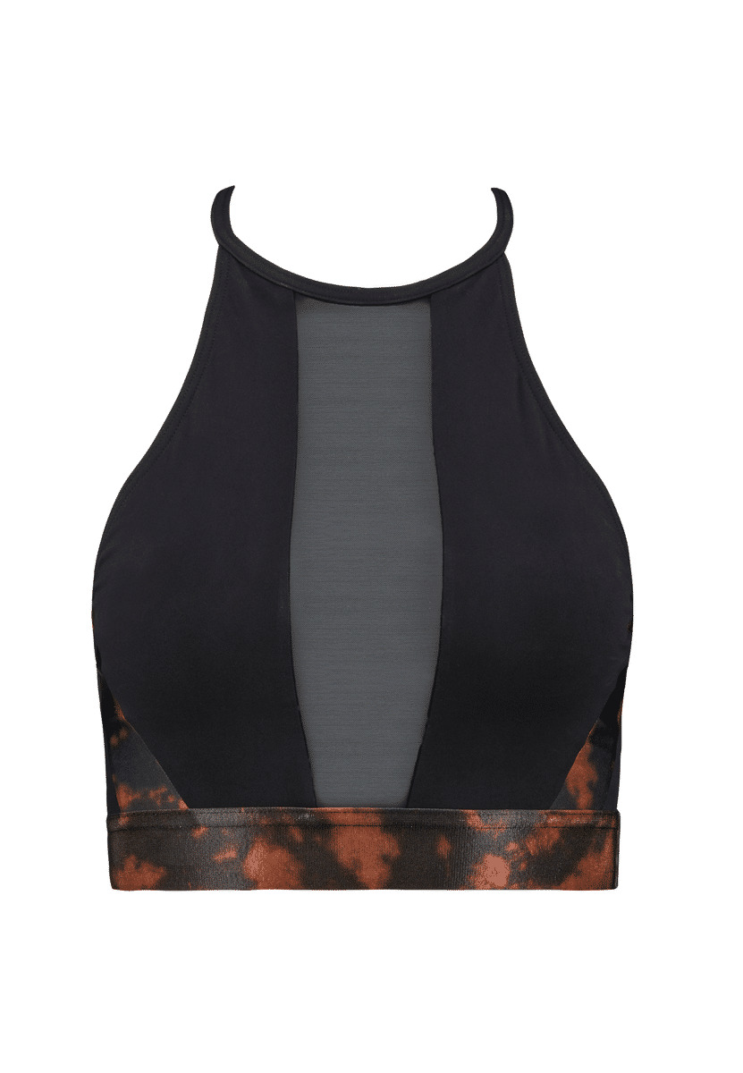 La brassière offre une coupe originale avec des bretelles larges portées basses sur les épaules pour un décolleté élégant et ouvert et un dos sexy, dans un jeu de bandes résolument mode.