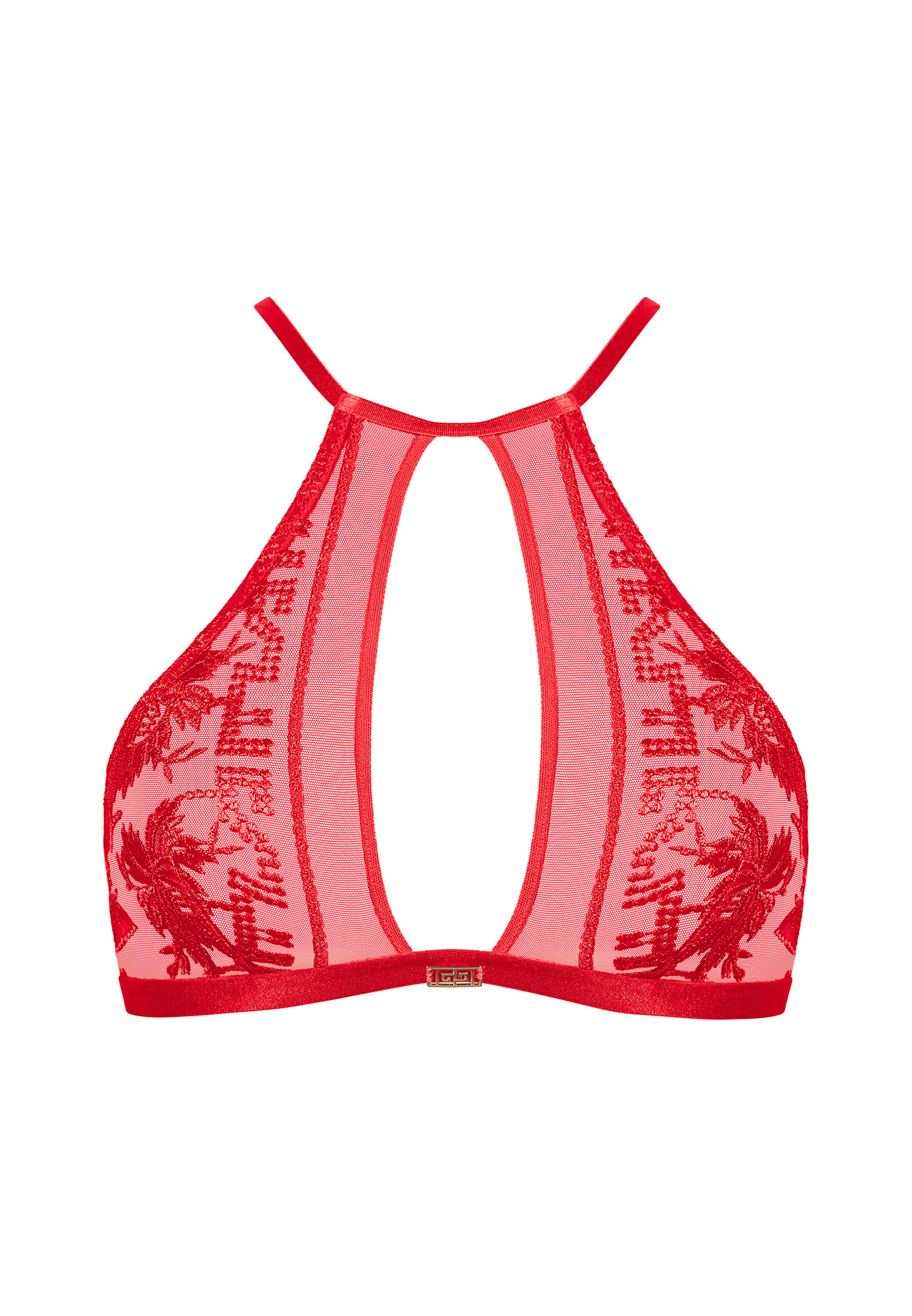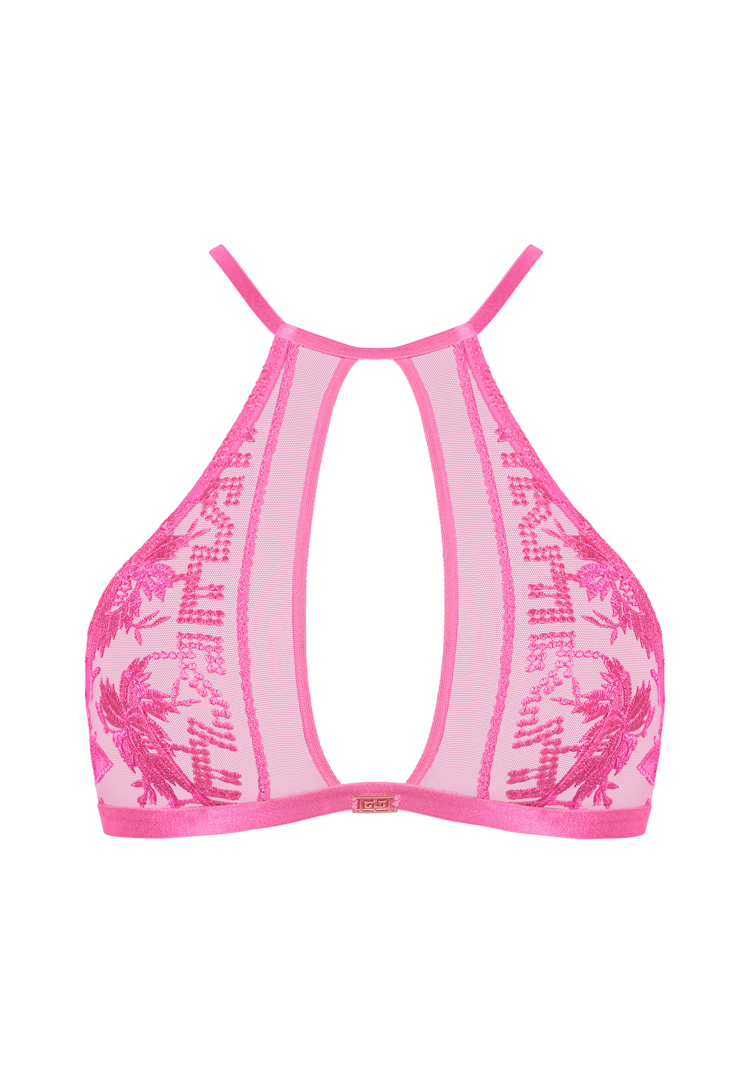 La brassière offre une coupe originale avec des bretelles larges portées basses sur les épaules pour un décolleté élégant et ouvert et un dos sexy, dans un jeu de bandes résolument mode.