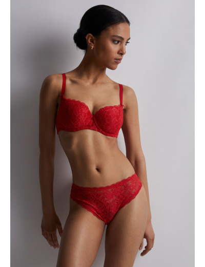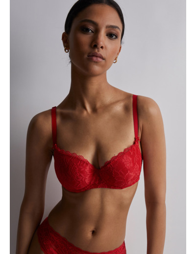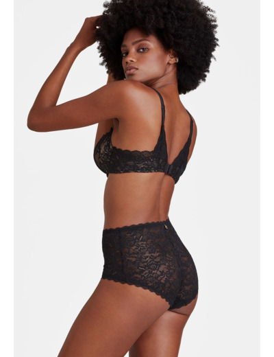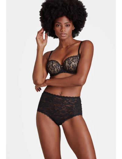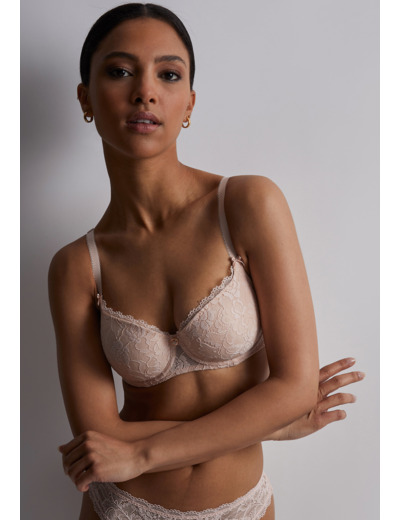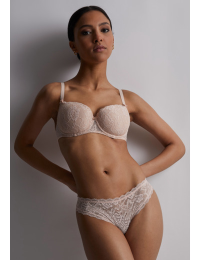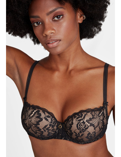 Modèle coque, forme corbeille, offrant un décolleté généreux. Une forme au maintien parfait jusqu’en bonnet F. Il a un dos cheminé en grandes tailles. Bénéfice : il donne à la poitrine un galbe arrondi et rebondi, avec l’avantage d’une coque lisse