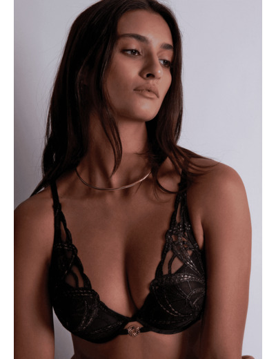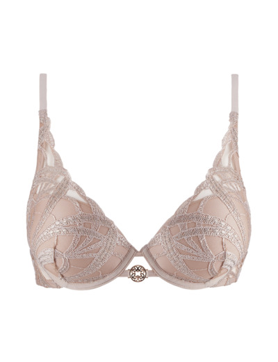 Modèle plongeant, forme foulard, permettant des décolletés profonds et sexy. Bonnets avec coques progressives - effet push. Bénéfice : il rapproche les seins, la dentelle montant sur le haut bonnet souligne le galbe de la poitrine pour un décolleté renversant. Jusqu’au bonnet E