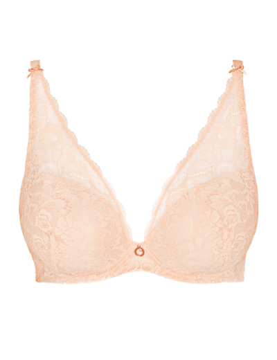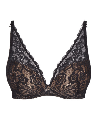 Modèle plongeant, forme foulard, permettant des décolletés profonds et sexy. Bonnets avec coques progressives - effet push. Bénéfice : il rapproche les seins, la dentelle montant sur le haut bonnet souligne le galbe de la poitrine pour un décolleté renversant. Jusqu’au bonnet E