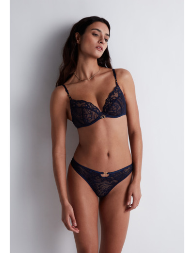 Modèle plongeant permettant aux femmes des décolletés profonds et sexy. Mousse en 3 parties avec un système de coussinets amovibles qui optimise le positionnement des seins afin de les projeter au centre et de sublimer le décolleté. Une doublure coton apporte un confort optimum. Bénéfice : il rapproche les seins et augmente le volume du décolleté. Les petites poitrines deviennent ainsi plus généreuses et les poitrines les plus importantes acquièrent un bombé très élégant.