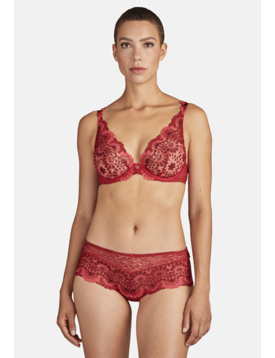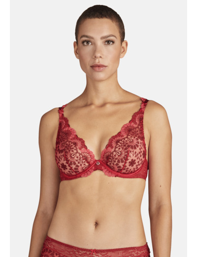 Soutien-gorge forme triangle avec armature. Selon les modèles, il peut être avec ou sans demi-lune mousse. Il offre un décolleté plongeant très séduisant et rassurant. Bénéfice : un décolleté profond et une matière qui se déploie en habillant le décolleté