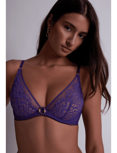 Fusion du Triangle Plunge et du Triangle Plunge Confort. Soutien-gorge forme triangle avec armature. Il offre un décolleté plongeant très séduisant et rassurant. Forme également adaptée aux grands bonnets avec un dos cheminée selon les tailles et un maintien parfait jusqu’au bonnet F. Bénéfice : un décolleté profond et une matière qui se déploie en habillant le décolleté.