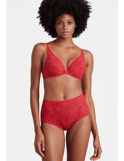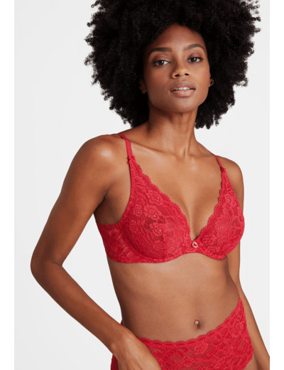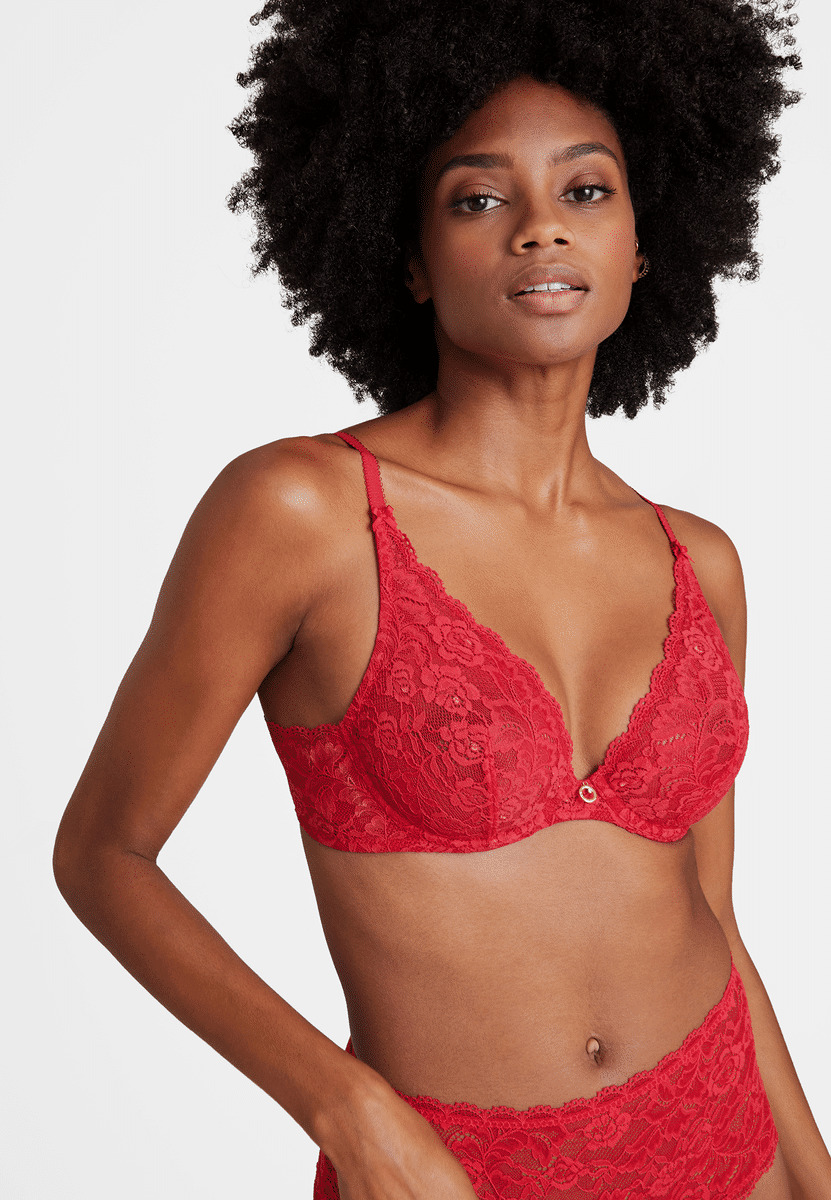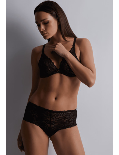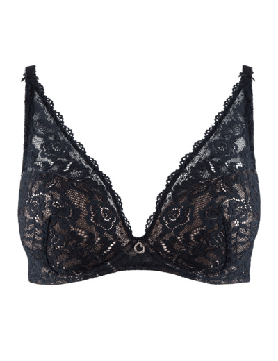 Soutien-gorge forme triangle avec armature. Selon les modèles, il peut être avec ou sans demi-lune mousse. Il offre un décolleté plongeant très séduisant et rassurant. Bénéfice : un décolleté profond et une matière qui se déploie en habillant le décolleté