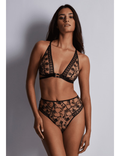 Forme triangle souple sans armature avec un décolleté plongeant en forme foulard et un petit agrafage. Les tailles se déclinent en S (=85B/C) / M (=90B/C) / L (95B/C). Bénéfice : léger et mode, il s’adresse aux femmes à la recherche d’un soutien-gorge sans armature avec un joli décolleté
