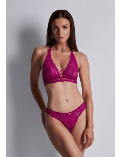 Forme triangle souple sans armature avec un décolleté plongeant en forme foulard et un petit agrafage. Les tailles se déclinent en S (=85B/C) / M (=90B/C) / L (95B/C). Bénéfice : léger et mode, il s’adresse aux femmes à la recherche d’un soutien-gorge sans armature avec un joli décolleté