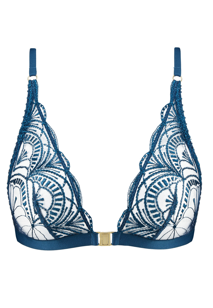 Forme triangle souple sans armature avec un décolleté plongeant en forme foulard et un petit agrafage. Les tailles se déclinent en S (=85B/C) / M (=90B/C) / L (95B/C). Bénéfice : léger et mode, il s’adresse aux femmes à la recherche d’un soutien-gorge sans armature avec un joli décolleté