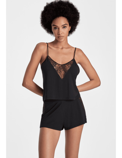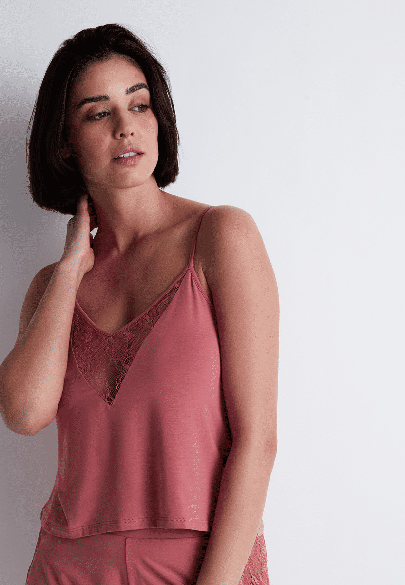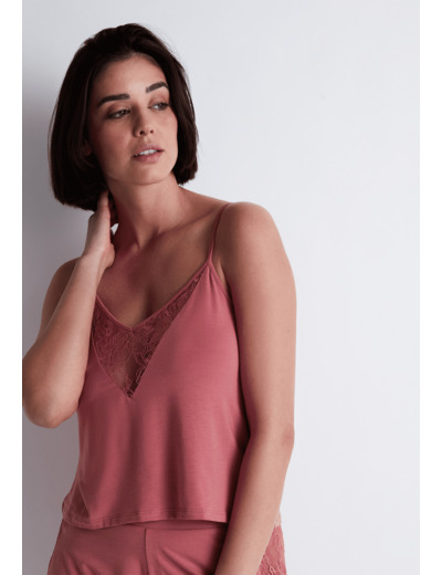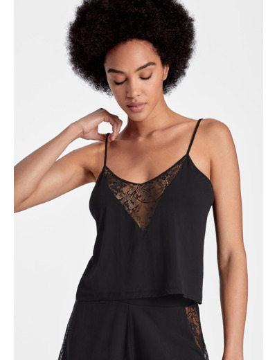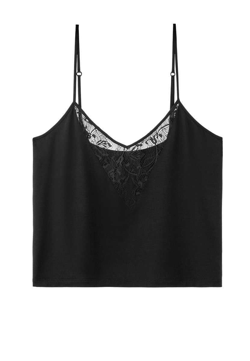 Forme de top avec de fines bretelles qui se porte en lingerie.