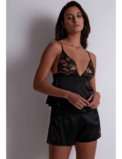 Forme de top avec de fines bretelles qui se porte en lingerie.