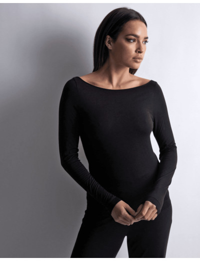 Le top manche longue est un véritable bijou de confort et de séduction.Les poignets laissent entrevoir la fantaisie d’une femme bien dans son corps et dans son esprit. Le décolleté V suggère quant à lui le jeu de la séduction.