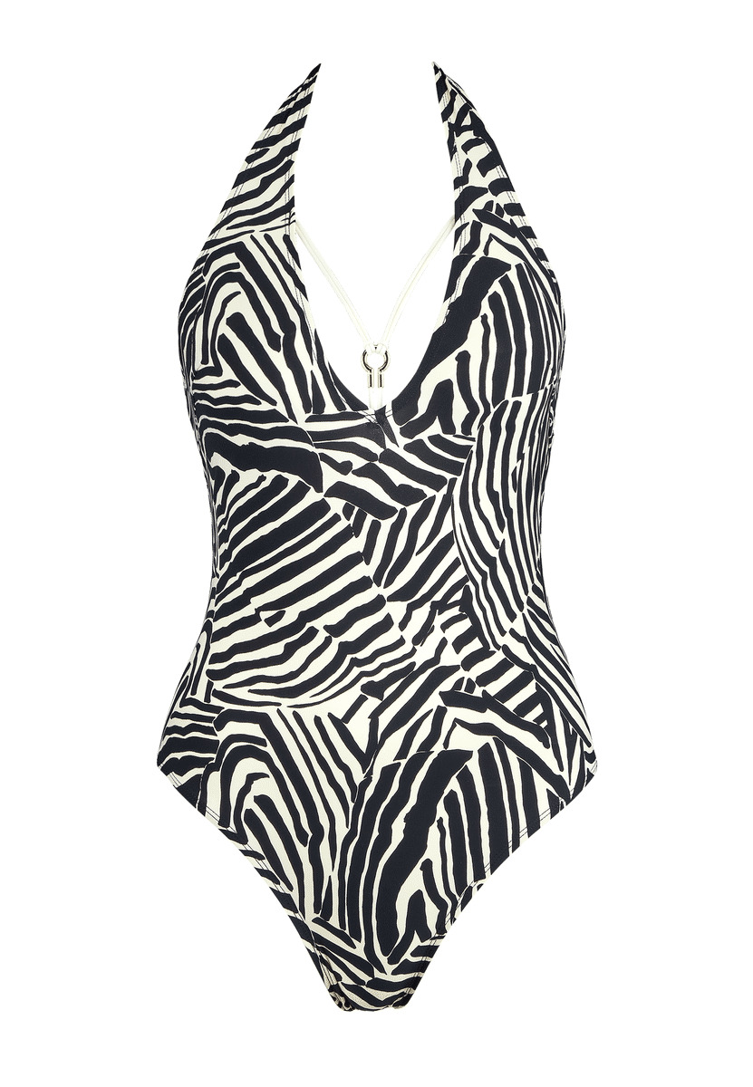 Ce modèle une pièce valorise la taille grâce à sa coupe graphique. Il dessine les courbes dans un style très contemporain, tout en dévoilant un décolleté profond, qui reste léger grâce à l’absence d’armatures. Ce modèle convient à toutes les tailles, menues et grandes.