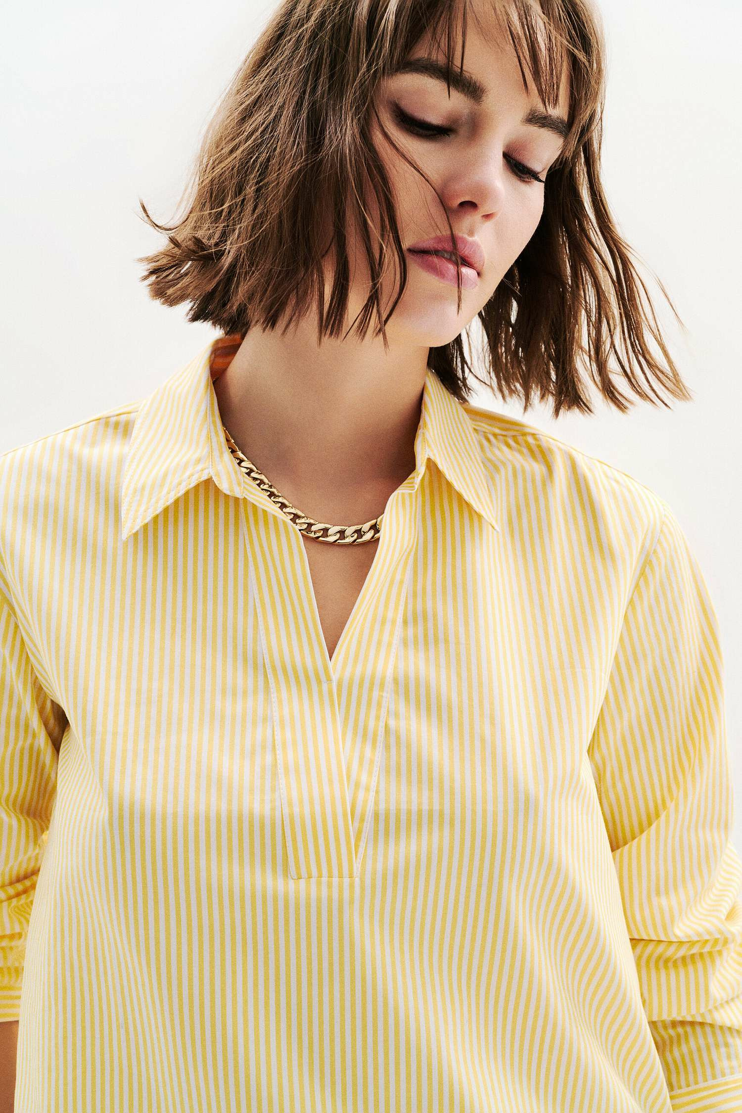 Conçue pour s’adapter à chaque moment, cette blouse à col chemise et manches longues se porte aussi bien avec un jean brut pour un look casual chic que sous une veste avec un pantalon cigarette pour une allure professionnelle et soignée. Sa longueur de 68 cm en taille S assure un tombé parfait, facile à associer à vos pièces favorites.