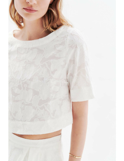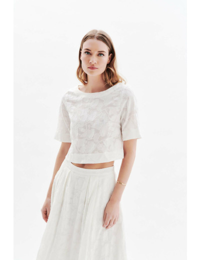 Conçue dans un mélange de coton et polyamide recyclé, cette blouse se distingue par son col bateau délicat et ses manches courtes, parfaites pour les journées ensoleillées ou les superpositions. Sa longueur maîtrisée de 47 cm en taille 38 permet de la porter aussi bien rentrée dans une jupe ou un pantalon qu’en version décontractée. Polyvalente, elle s’associe aussi bien à un pantalon fluide et des mocassins qu’à une jupe midi et une veste cintrée pour un look travaillé.