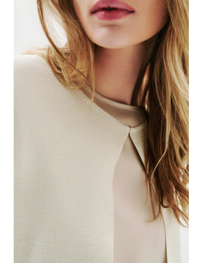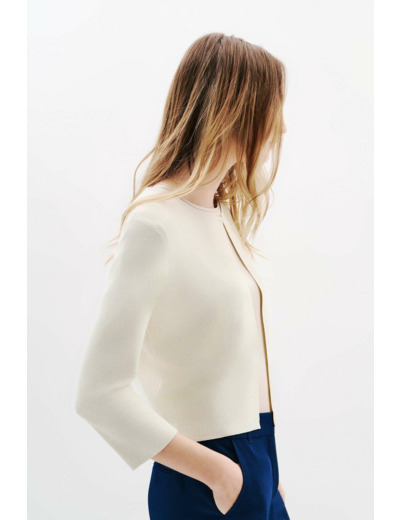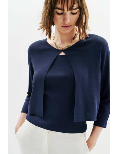 Le boléro Mlaura incarne l’élégance contemporaine pour vos occasions spéciales. Sa coupe droite et courte dessine une silhouette raffinée, sublimée par la finesse de sa maille délicate.