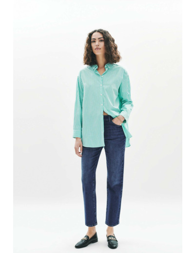 Conçue en coton 100%, cette chemise offre un confort naturel et une tenue impeccable au quotidien. Son col classique et ses manches longues en font une pièce versatile, facile à associer pour un look chic ou plus casual. Portez-la avec un jean brut et des mocassins pour une allure soignée sans effort, ou avec une jupe midi fluide et des sandales plates pour une touche fraîche et féminine.