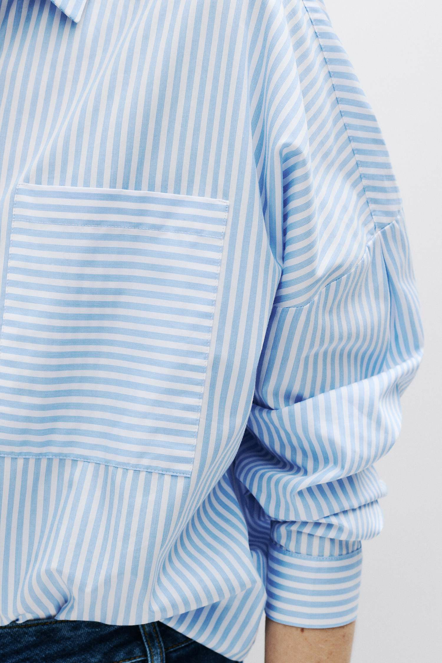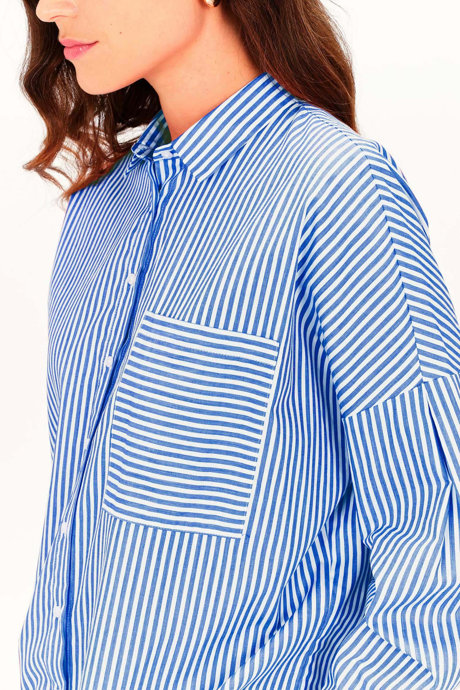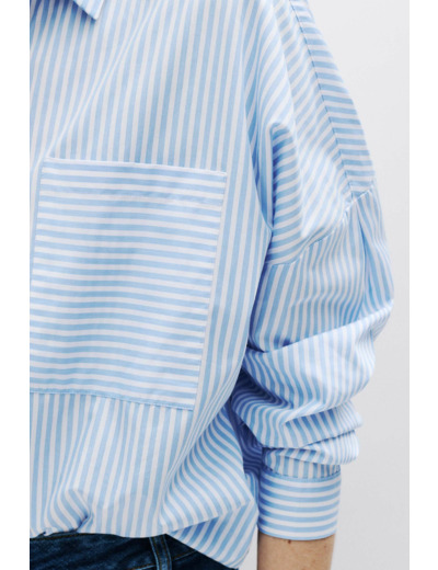 Adoptez l’élégance graphique avec la chemise Claudine, où les rayures verticales s’entrelacent avec des motifs horizontaux sur la poche pour un effet visuel unique. Une pièce qui dynamise votre silhouette tout en restant intemporelle.