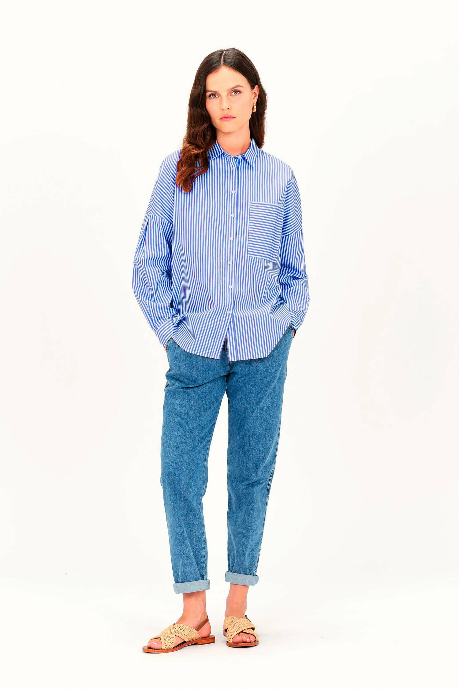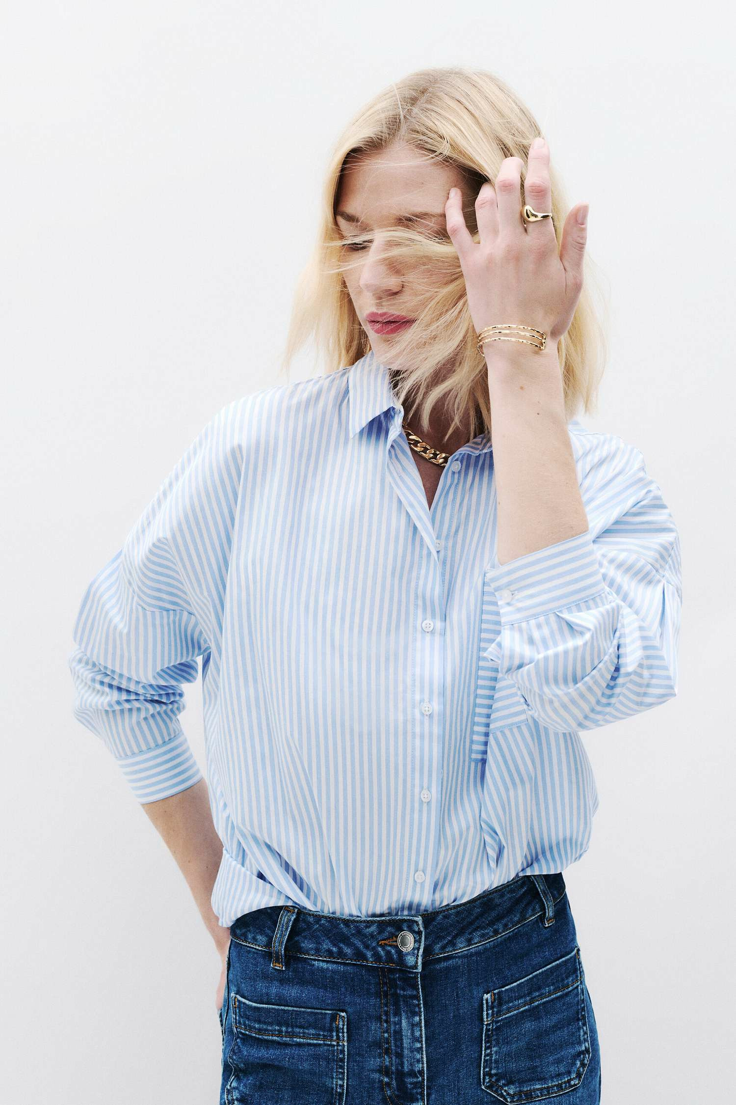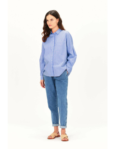 Cette chemise Claudine structure votre allure avec ses rayures contrastées, apportant profondeur et modernité à votre look. Facile à associer, elle se porte aussi bien au bureau qu’en ville, pour une silhouette soignée et pleine de caractère.