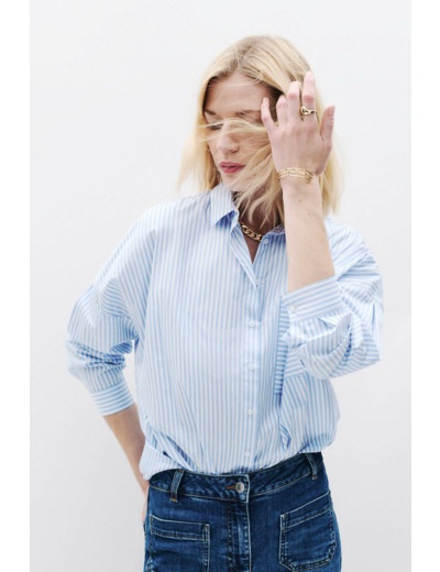 Réponse : La chemise Claudine se décline en plusieurs coloris au fil de la saison pour varier les styles.