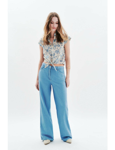 Conçue en coton 100%, cette chemise à manches courtes et col classique s’adapte à toutes vos envies de style. Sa longueur maîtrisée permet de la porter aussi bien rentrée dans un pantalon qu’avec une jupe fluide pour un look féminin ou casual. Polyvalente, elle se marie aussi bien avec un jean évasé et des sandales plates qu’avec une jupe midi et des espadrilles compensées, pour une allure toujours maîtrisée.