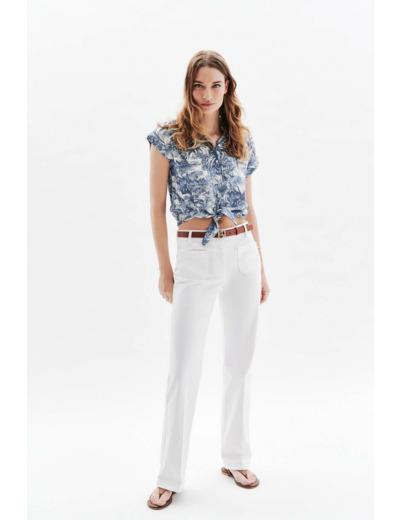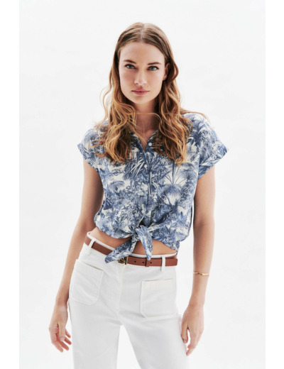 Tissu principal : 80% viscose Livaeco, 20% lin. Coupe droite, col chemise, manches courtes. Longueur 53,5 cm en taille 38. Disponible du 34 au 46. Lavage à 30°C en cycle délicat recommandé, nettoyage à sec conseillé. Repassage à température moyenne (max 150°). Séchage à l’air libre, sèche-linge interdit.